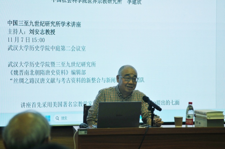 2025年11月7日下午,中国社会科学院世界宗教研究所研究员、博士生导师李建欣先生,应邀在武汉大学历史学院中庭第二会议室作了题为“改革开放40年来的我国宗教学”的讲座。本次讲座由武汉大学历史学院党委书记、武汉大学文科学报主编刘安志教授主持,姜望来、黄楼、吕博、聂靖、胡子琦等老师以及研究生、本科生数十人到场聆听。 李建欣先生以重温一段特别的因缘开启了本次讲座:20世纪中叶,印度哲学、宗教学研究著名学者金克木先生,与周煦良、唐长孺、程千帆三先生的“珞珈山下四人行”,是一段跨学科的学术佳话。并介绍了中国佛教史研究大家汤用彤先生当年赠与武汉大学哲学院一批珍贵书籍的基本情况。 李建欣先生援引尼尼安·斯马特提出的分析宗教的七面相,以此勾勒出宗教学的框架,并提示我们尤其要认识到宗教是一个复杂而多元的社会历史现象。之后李老师概述了我国宗教学学科建立过程。20世纪二十到三十年代,是现代中国宗教学的奠基阶段,其主要特点是,出现了一批站在科学立场上进行现代学术研究的学者,如汤用彤、陈寅恪、陈垣和胡适等。1949-1966年间,是当代中国宗教学的初创阶段;1964年中国科学院哲学社会科学学部创设世界宗教研究所,标志着我国宗教学在学科意义上的正式创建。1966-1978年间,是当代中国宗教学的凋零时期,直到1977年中国社会科学院的建立以及世界宗教研究所归属社科院,我国宗教学研究才逐渐重回正轨。改革开放40年来,我国宗教学有长足的发展,涌现众多研究机构,成立全国性的学术研究共同体,创设一批专业研究刊物,形成一定规模的宗教学专业研究生培养体系。最后,李老师强调了宗教问题的复杂性、宗教学研究的重要性以及新时代我国宗教学发展的趋势。 讲座结束之后,刘安志教授作出点评,对李建欣先生系统细致的梳理予以高度评价。在场师生就宗教学研究疑难问题、基本方法和注意事项等问题,与李建欣先生进行了热烈讨论与交流。(陈正桦)